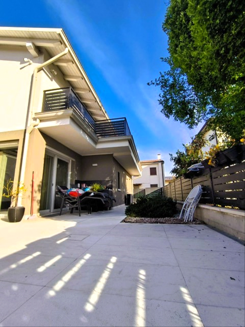 Nel pieno centro di Dossobuono (Villafranca) si vende una splendida villa unifamiliare di recentissima costruzione di mq totali 249. Composizione dell'immobile: piano terra con grande soggiorno, cucina abitabile, camera da letto matrimoniale, lavanderia e bagno finestrato. Primo piano con tre camere da letto di cui una matrimoniale ampia, bagno finestrato, balcone e grandi terrazzi. Intorno alla costruzione troviamo una corte esclusiva di 150 mq circa. Sul tetto vi sono pannelli fotovoltaici. Le finiture si contraddistinguono per raffinatezza ed eleganza: parquet in rovere nero a spina di pesce, impianto di ricambio d'aria, infissi doppi in alluminio, impianto centralizzato di aspirazione polveri etc etc. Due posti auto. Esiste anche l'opportunità di acquisire l'immobile inclusi gli arredi ed i complementi. Il prezzo richiesto per questa porzione immobiliare, mobili esclusi, ammonta ad